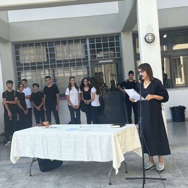 31 Μαρτίου 2025: Με την ευκαιρία της Επετείου της 1ης Απριλίου 1955, πραγματοποιήθηκε τη Δευτέρα 31 Μαρτίου ενδοσχολικός εορτασμός. Μέσα από πεζά και ποιητικά κείμενα εμπλουτισμένα με δραματοποιημένες σκηνές, επετειακά τραγούδια και χορούς, τιμήσαμε τον απελευθερωτικό αγώνα του 1955- 1959.