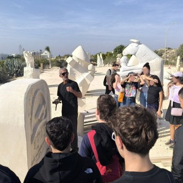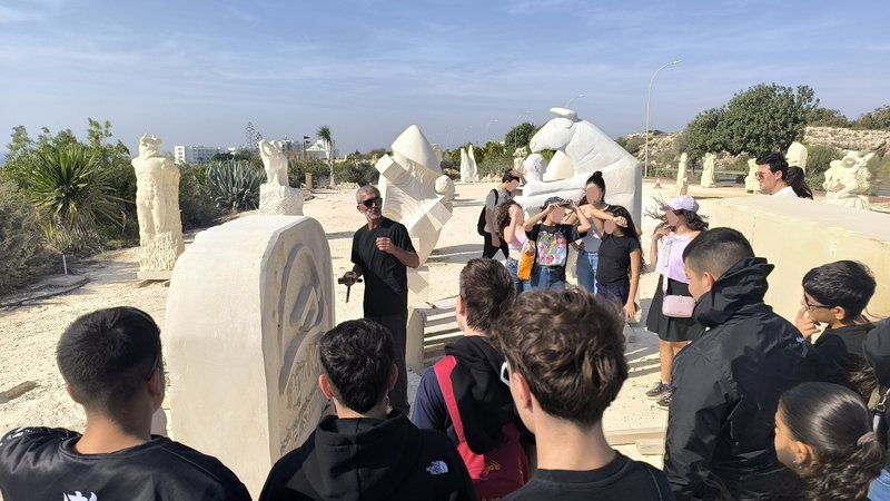 Οι μαθητές του Γ4 και Γ5 του Περιφερειακού Γυμνασίου Λιβαδιών επισκέφθηκαν το Πάρκο Γλυπτικής Αγίας Νάπας όπου τους υποδέχτηκε ο εικαστικός καλλιτέχνης Alexandros Greek Αλέξανδρος Μπαϊμπουρντίδης,τους έδειξε τα έργα του και τον τρόπο με τον οποίο δημιουργεί τα γλυπτά του. Οι μαθητές δοκίμασαν ένας ένας να λαξεύσουν τον ασβεστόλιθο και το μάρμαρο, έτσι ήρθαν σε επαφή με την γλυπτική και την τεχνική της αφαίρεσης.