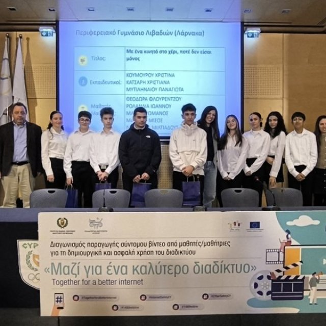 1o Βραβείο στον Παγκύπριο Μαθητικό Διαγωνισμό Παραγωγής Βίντεο για την Ασφάλεια στο Διαδίκτυο για το Περιφερειακό Γυμνάσιο Λιβαδιών για τρίτη συνεχόμενη χρονιά!